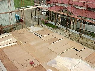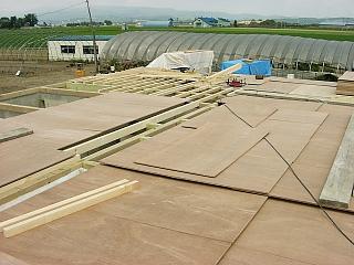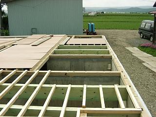 軸組み、組み立てに先駆けて、土台、大引き仮床施工